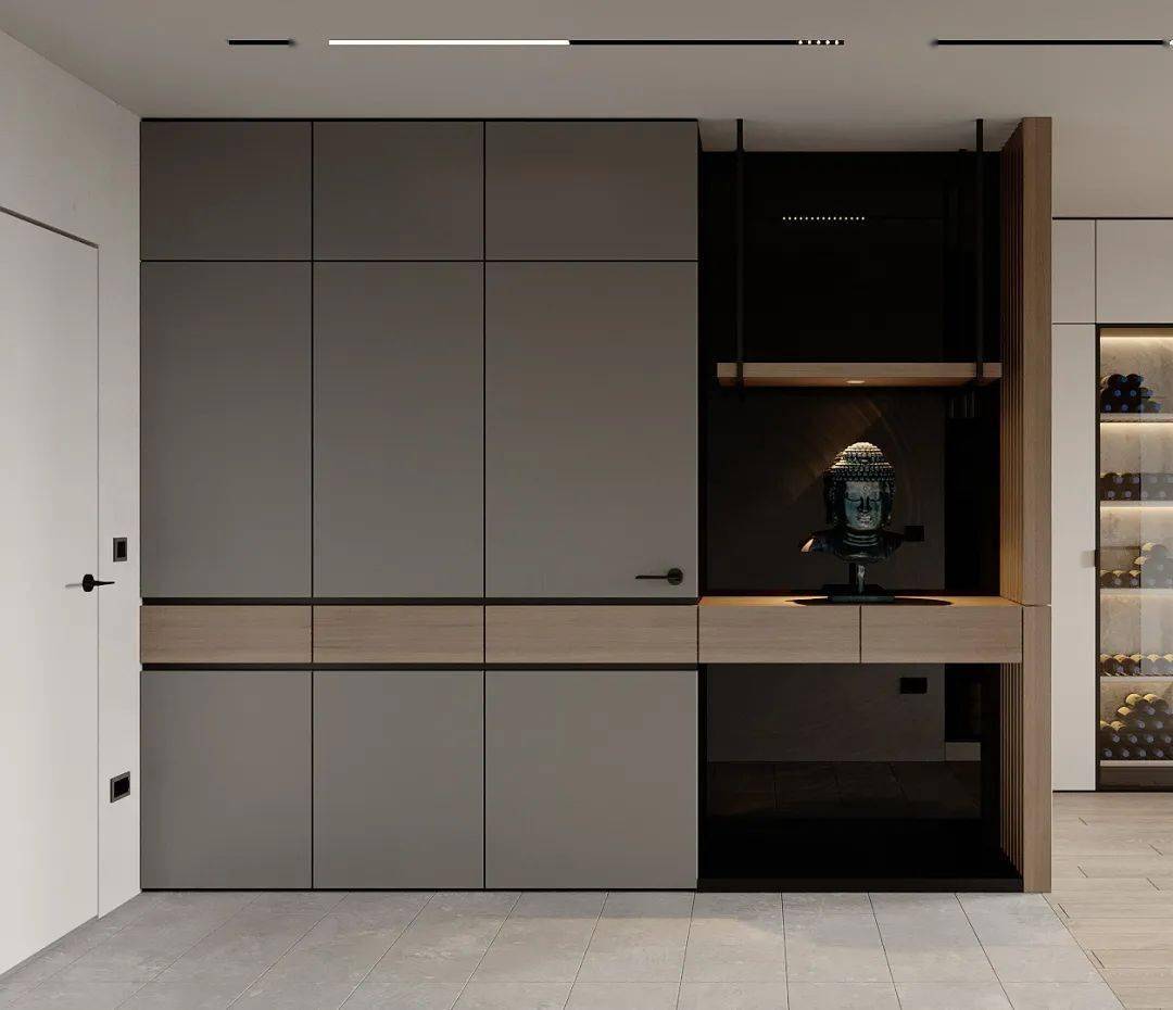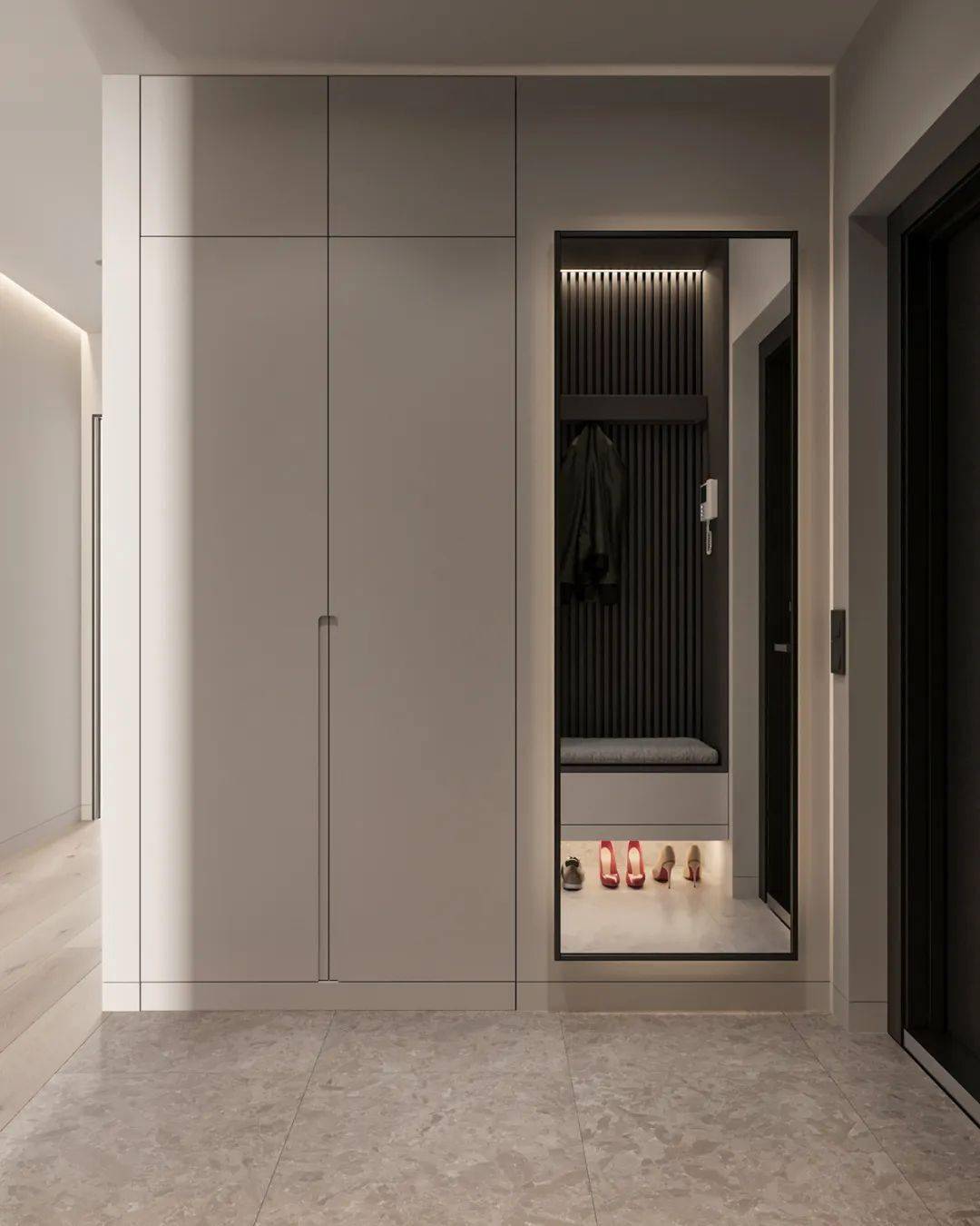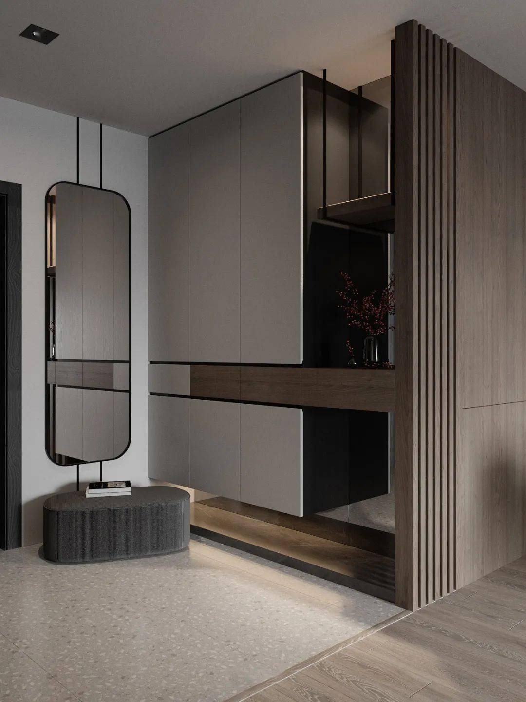门厅柜设计需要从现场情境出发,面对不同的门厅布局,可能需要采取不同的设计方案。最终设计方案应该保证能够让使用者充分体验到门厅的实用、美观、舒适感。