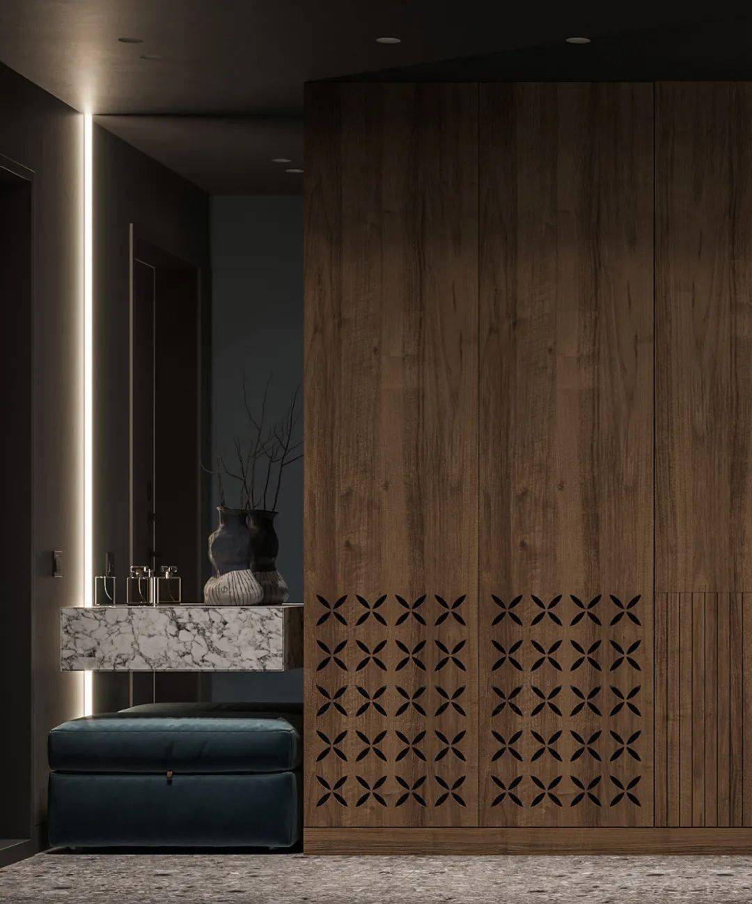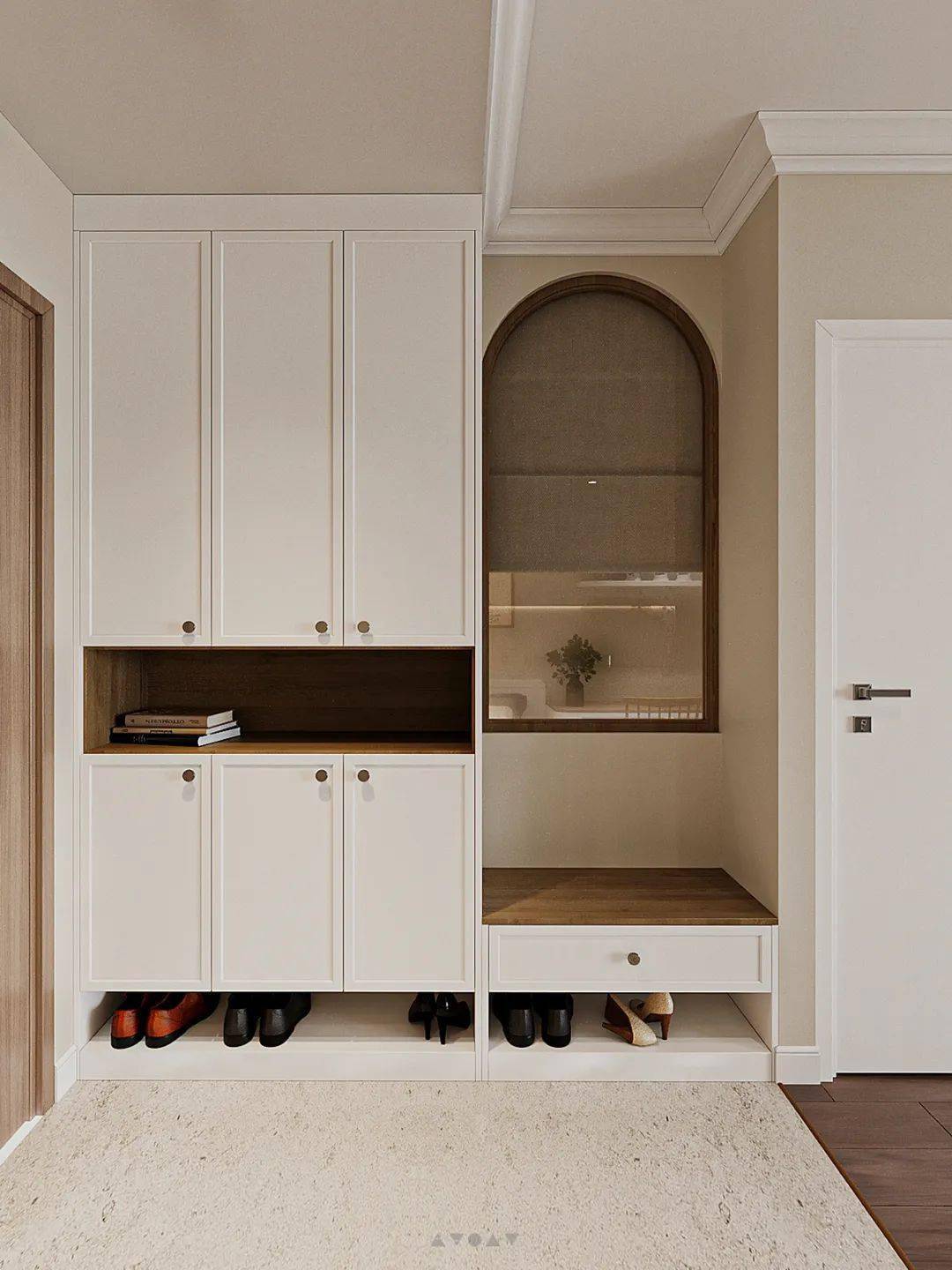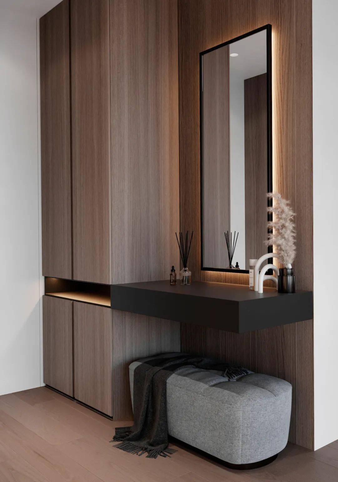 门厅柜设计需要从现场情境出发,面对不同的门厅布局,可能需要采取不同的设计方案。最终设计方案应该保证能够让使用者充分体验到门厅的实用、美观、舒适感。