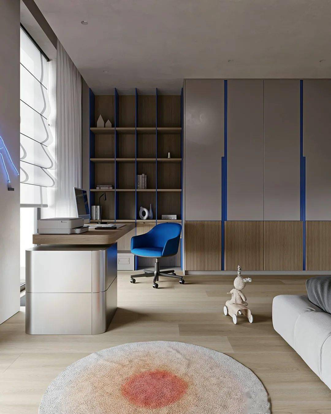 儿童房的设计,除了要营造一种天真烂漫的氛围外,还需要有休憩功能、学习功能和收纳功能。全屋定制的设计可以考虑将衣柜、书柜、书桌做一体化定制,不···
